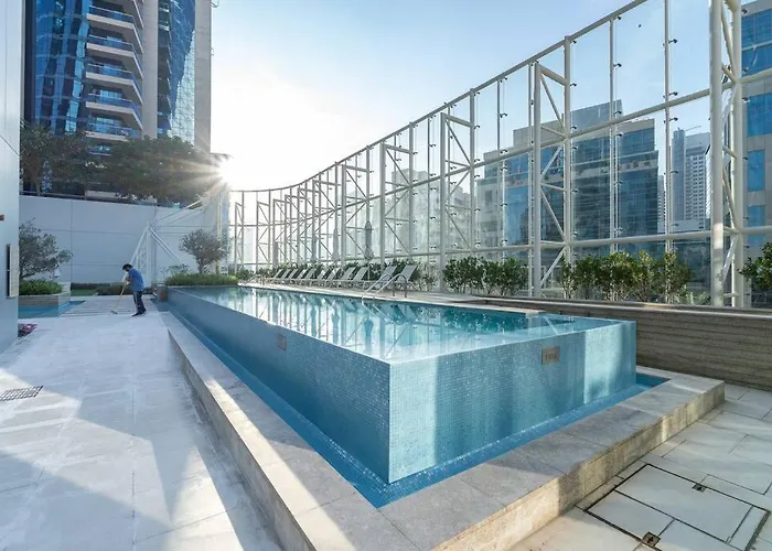 Cosmopolitan Apartment With Burj Khalifa View المكونة من 1 غرفة نوم تقع في منطقة الخليج التجاري، على بعد 7 كم تقريبًا من منطقة السركال أفينيو للفنون، وتتميّز بإطلالات على المسبح. تتوفر أيضًا خدمة الواي فاي وموقف السيارات الخاص المجاني في الشقة.